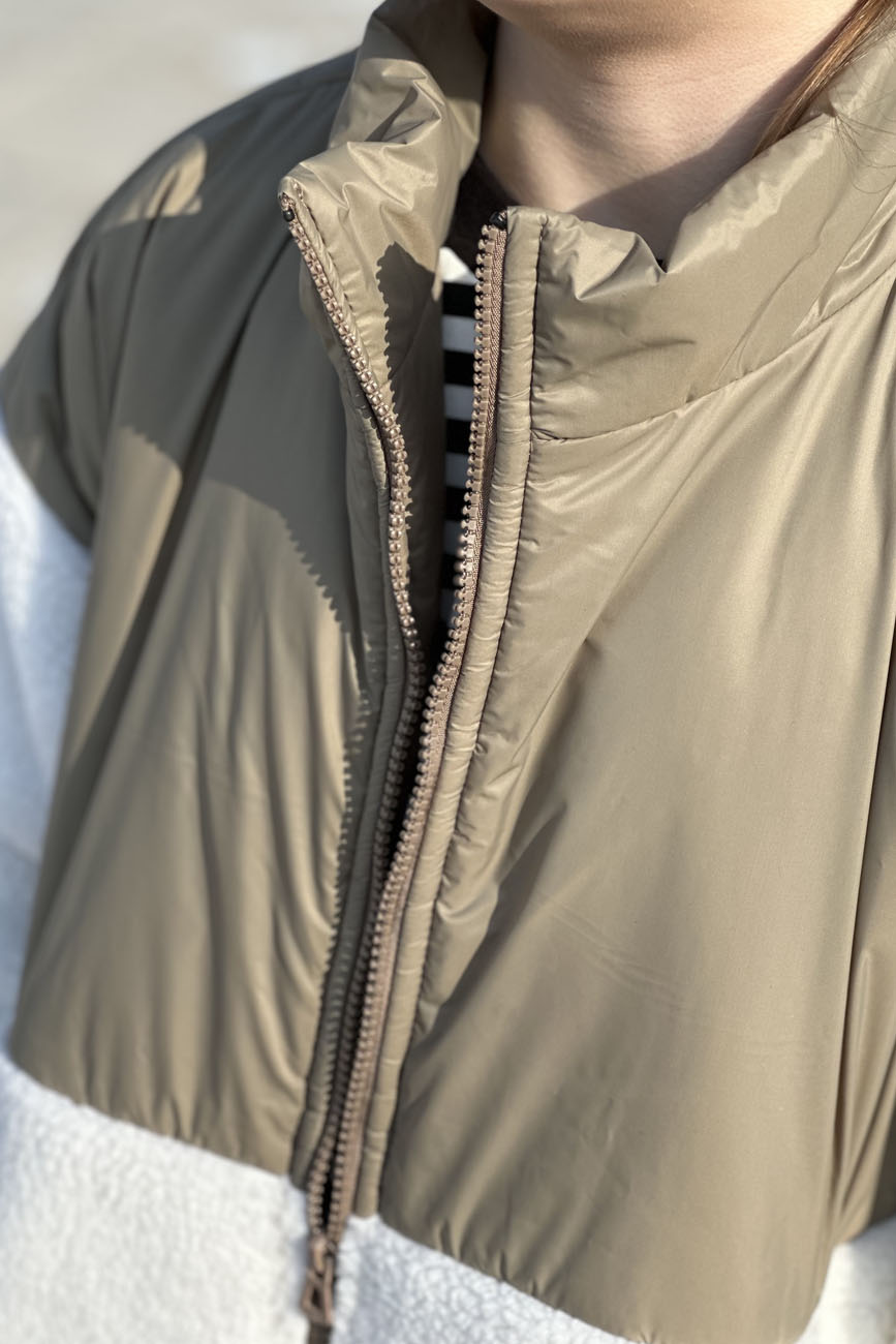 Куртка oversize кроя, утепленная синтепоном. Подойдет для осеннего и весеннего периода. Утягивается по нижнему краю. Рукава регулируются по длине. Застегивается на молнию.